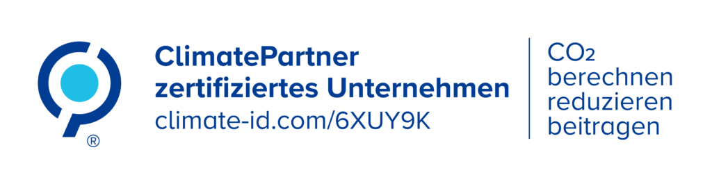 Bereits seit 2016 reduzieren wir mit unserem ISO-zertifizierten Managementsystem (14001 und 50001) erfolgreich unsere Energieverbräuche und Emissionen. Seit 2016 haben wir so bis 2023 bereits rund 60% unserer CO2-Emissionen eingespart. Zudem sind wir seit 2021 ClimatePartner zertifiziert.